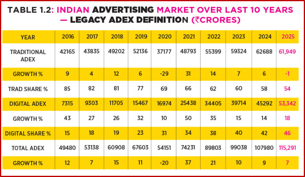 Madison World just killed the comfort of legacy planning. It has just reframed India’s AdEx math and confirms Digital as the structural spine of a ₹1,55,105 crore market. With ₹93,156 crore in Digital spend and Traditional shrinking while Digital absorbs over 100% of incremental growth, budget reallocation is now a zero-sum game.